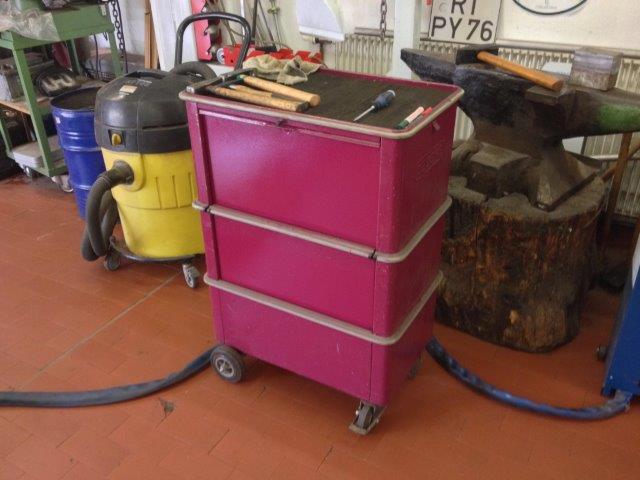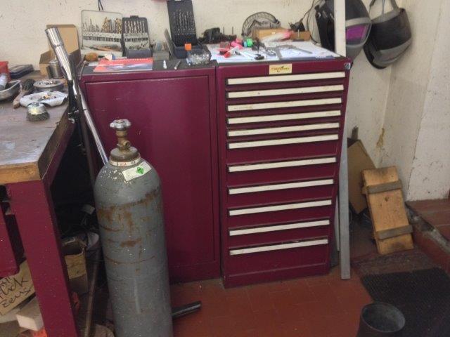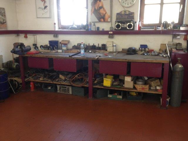 Auch alle Werkzeuge (Schraubenschlüssel, Zangen, usw.), Werkbänke, Werkzeugschränke, Wandregale usw. werden verkauft.