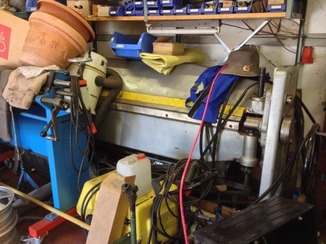 steht komplett in Einzelteilen zum Verkauf. Alle Maschinen (Blechbearbeitung, Schneiden,
