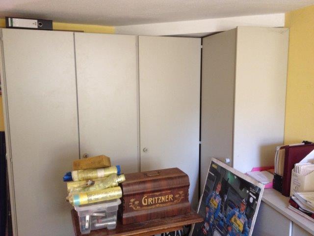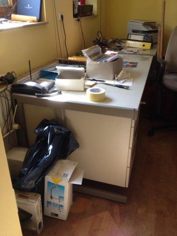 Die Büroeinrichtung mit Aktenschränken und Schreibtischen wird ebenfalls verkauft.